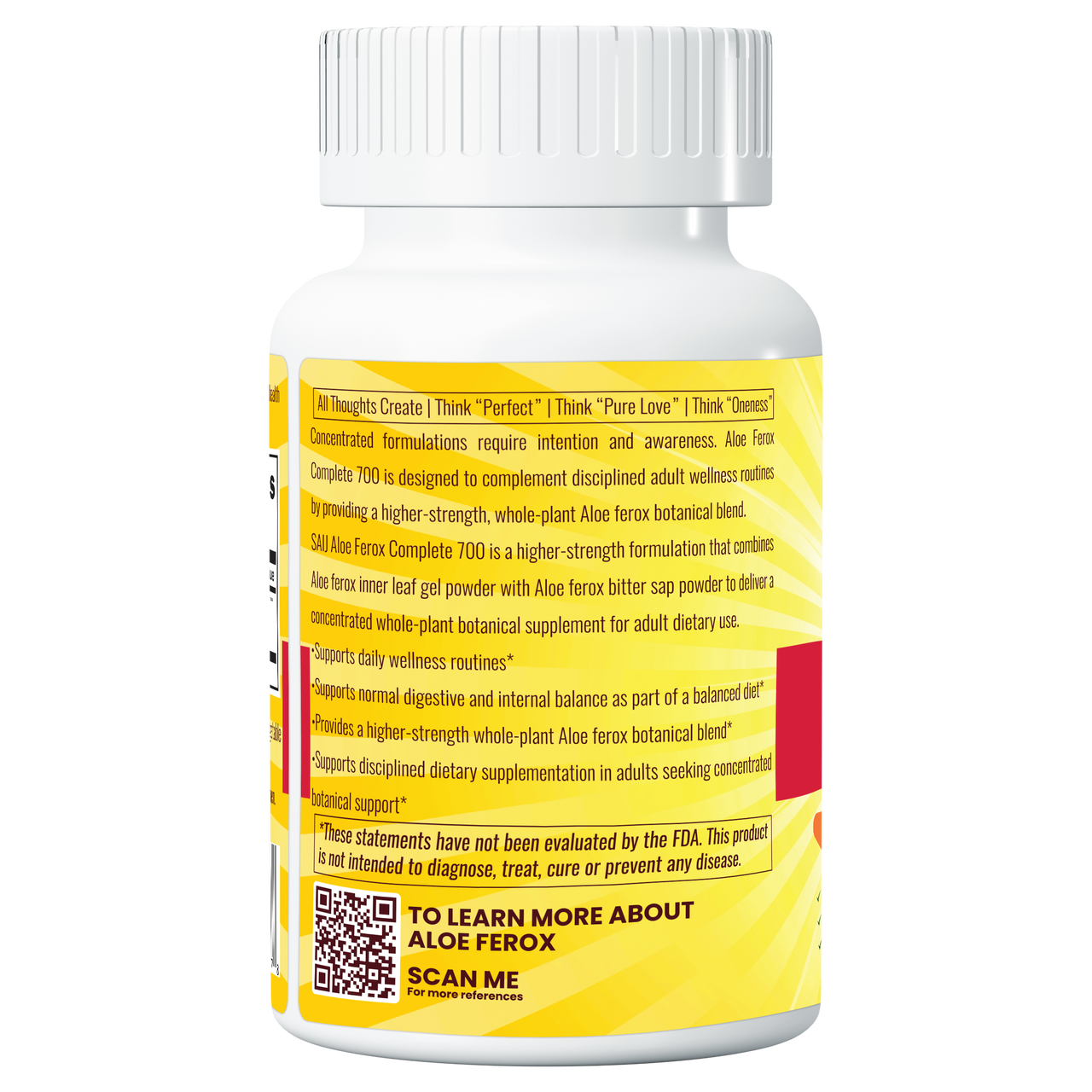 By providing an increased amount of Aloe ferox botanical material per capsule, Aloe Ferox Complete 700 is designed for adults seeking a more concentrated option to complement disciplined wellness routines. This formulation supports normal digestive balance and daily wellness practices as part of a balanced diet*, while maintaining careful, intentional use.